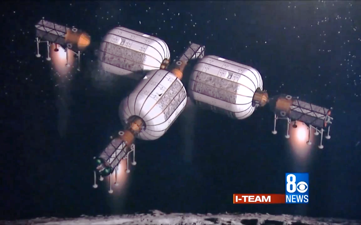 ‘[NASA] contracted with Bigelow Aerospace in Las Vegas, Nevada, to build new crew quarters that will be attached to the International Space Station in late 2015. The Bigelow Expandable Activity Module (BEAM) will travel within an unpressurized cargo hold. At the space station, the module will be attached to an air lock and then inflated to its full size of 13 feet long and 10 feet wide (with 560 cubic feet of space).’