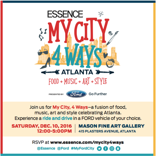 Essence Magazine and Ford kicked off their ‘My City, 4 Ways Atlanta’ event at the Mason Fine Art Gallery in Atlanta (Georgia, USA) this past Saturday, December 10th, with a blend of food, music, art and style featuring some of the city’s influencers such as Anthony David, Algebra, Tweet, Loni Love, Chef Ahki, Erica Key, Kenya Freeman, Kashmir Thompson and DJ Princess Cut.
