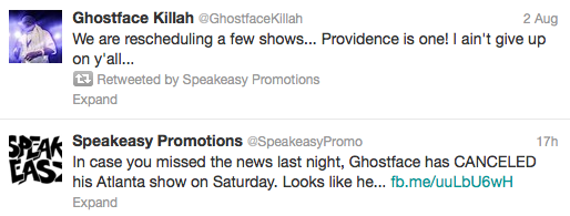 UPDATE: GHOSTFACE CANCELS ATLANTA SHOW