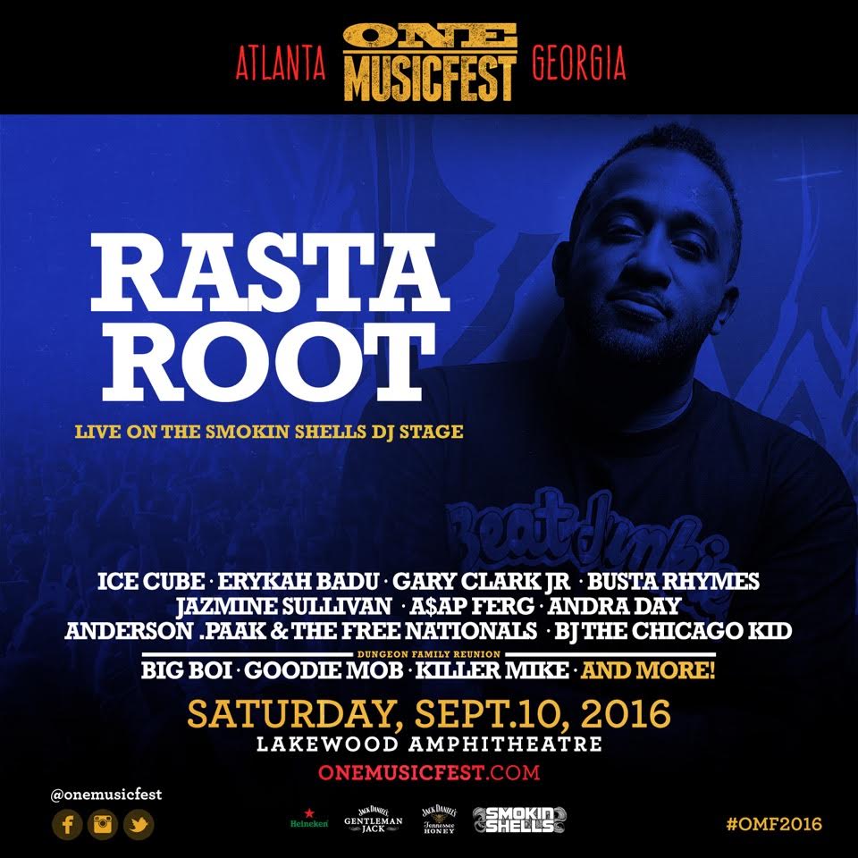 Point blank: To start, you NEED to catch the homie DJ Rasta Root on deck at the Smokin Shells DJ Stage for this year’s One Musicfest in Atlanta (Georgia, USA), Saturday, September 10, 2016, at Lakewood Amphitheatre.