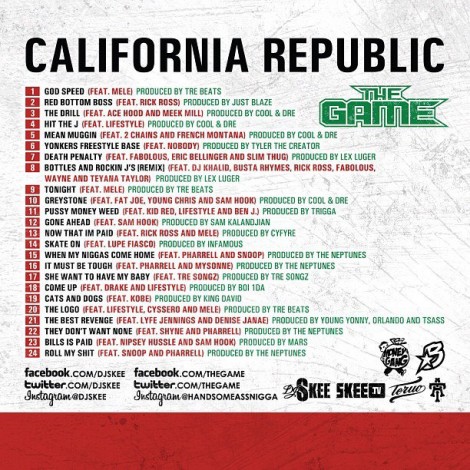 And just like that….here’s the “No DJ/untagged” version of Game’s “California Republic” mixtape….Check for the tracklisting below….