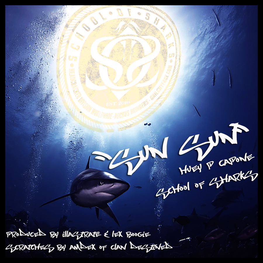 The School Of Sharks are back at it again….Circling that weak hip hop that the majority of the mainstream people are used to! It looks like several talented emcees & producers helped make this song a reality with illastrate & Lex Boogie on production & Amdex on the scratching duties. Hpone is handling all of the emceeing for this particular track. Â So sit down & listen to this & let me show you ‘Sun Sun’…..