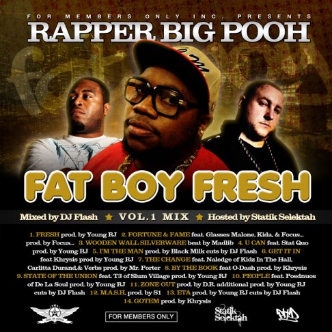 Underground Hip Hop Vet & Little Brother alumnus, Rapper Big Pooh, drops this new mixtape as an appetizer for fans in anticipation for his forthcoming digital EP entitled FatBoyFresh Vol. 1: For Members Only. Mixed by DJ Flash and hosted by Statik Selektah, the one-track, “old-school style†mix blends segments from 14 of the 19 new and previously-released cuts set to appear on the EP.