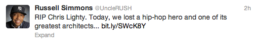 Chris Lighty worked his way up through the ranks in the music industry over the years having managed the careers of A Tribe Called Quest, LL Cool J, 50 Cent, Diddy, Busta Rhymes, Mariah Carey, & many others often times through his Violator Management company. This morning the long-time music industry veteran was found dead of an apparent self-inflicted gunshot would to the head inside of his Bronx NY apartment. The NY Daily News is reporting that Chris Lighty had allegedly owed the IRS over $5 Million dollars & was just getting over a divorce in 2011. Many of “Baby” Chris Lighty’s friends, fans, associates, & admirers took to twitter to express their condolences below….