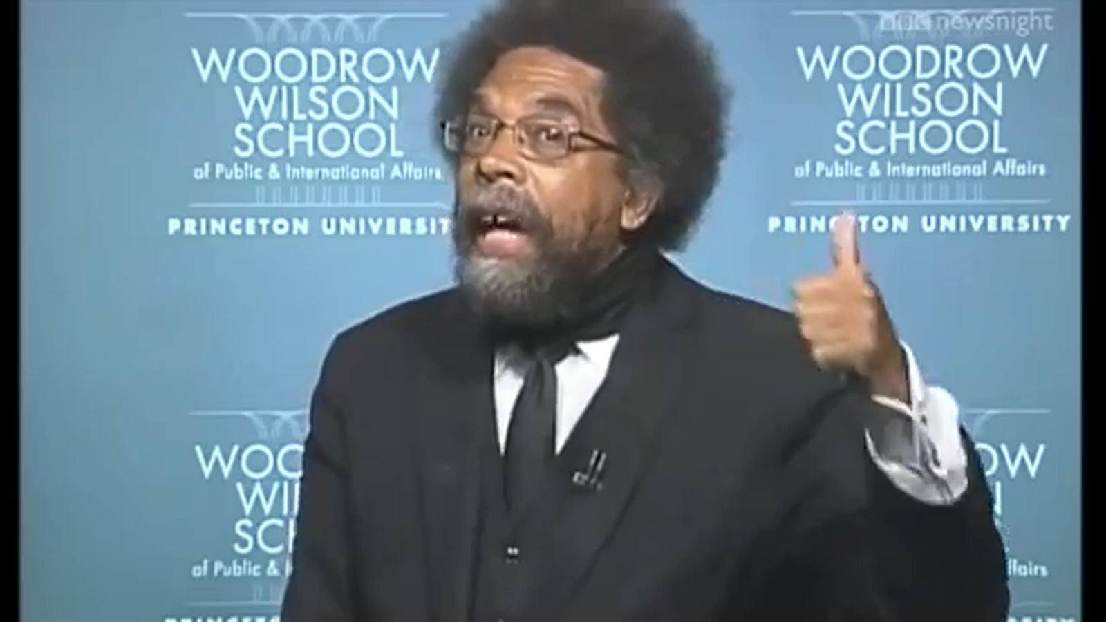 In the above clip (Dyson’s is after the jump), Dr. West is talking on BBC. Despite the time delay due to overseas videoconferencing, we quickly get to some really good meat for discussion. In response to a posit from the BBC Newsnight correspondent made of the Black leader West: