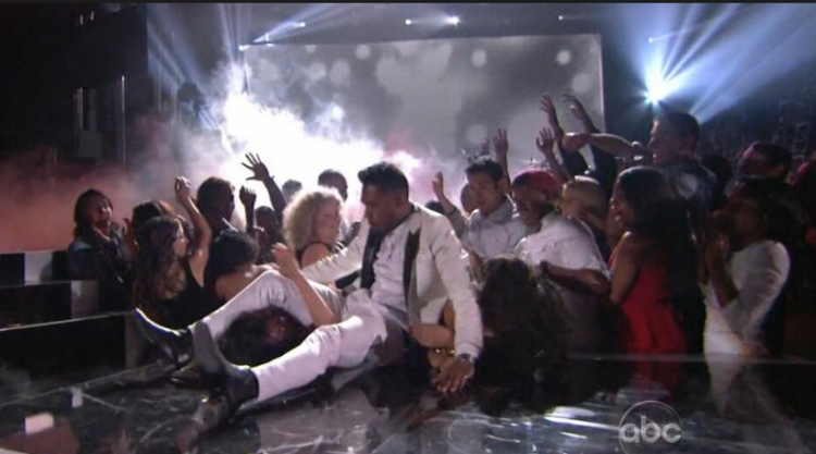 Thank you, Charlie Sloth! It was a leg drop not a ‘kick’Â Miguel hit the fan with. Hahaaa! Miguel has been a great sport about that incident, and we found out he checked in with and even did an ‘on-camera’ with that unfortunate-fortunate female fan. Watch the rest though: Miguel gets deep in this sit-in…explaining a controversial tweet…even dropping a freestyle for the Brit listeners.