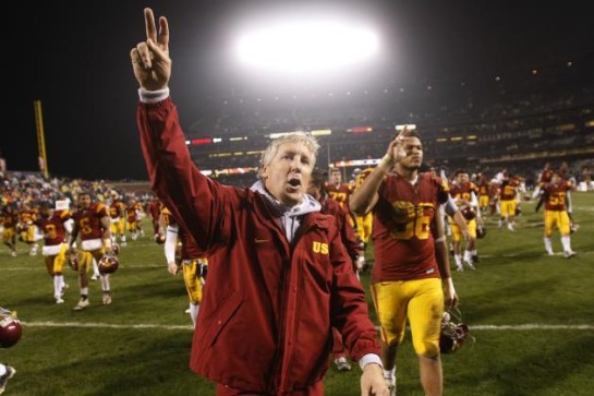 Ah, college football fans. Let’s talk about the Pete Carroll – USC Era. He took over the program at the University Of Southern California after the 2000 season, and eventually restored the luster and swagger of the once-great Trojans with his football knowledge, upbeat personality and recruiting skills (and a couple of star graduates who’d come back to visit, if recollection serves).