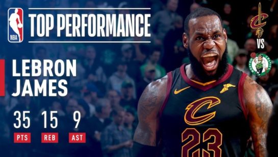 The Cavaliers defeated the Celtics, 87-79 tonight in Game 7 of the Eastern Conference Finals to win the series 4-3 and advance to the NBA Finals. LeBron James led all scorers with 35 points (12 in 4th quarter) to go with 15 rebounds, 9 assists and 2 blocks for the Cavaliers.