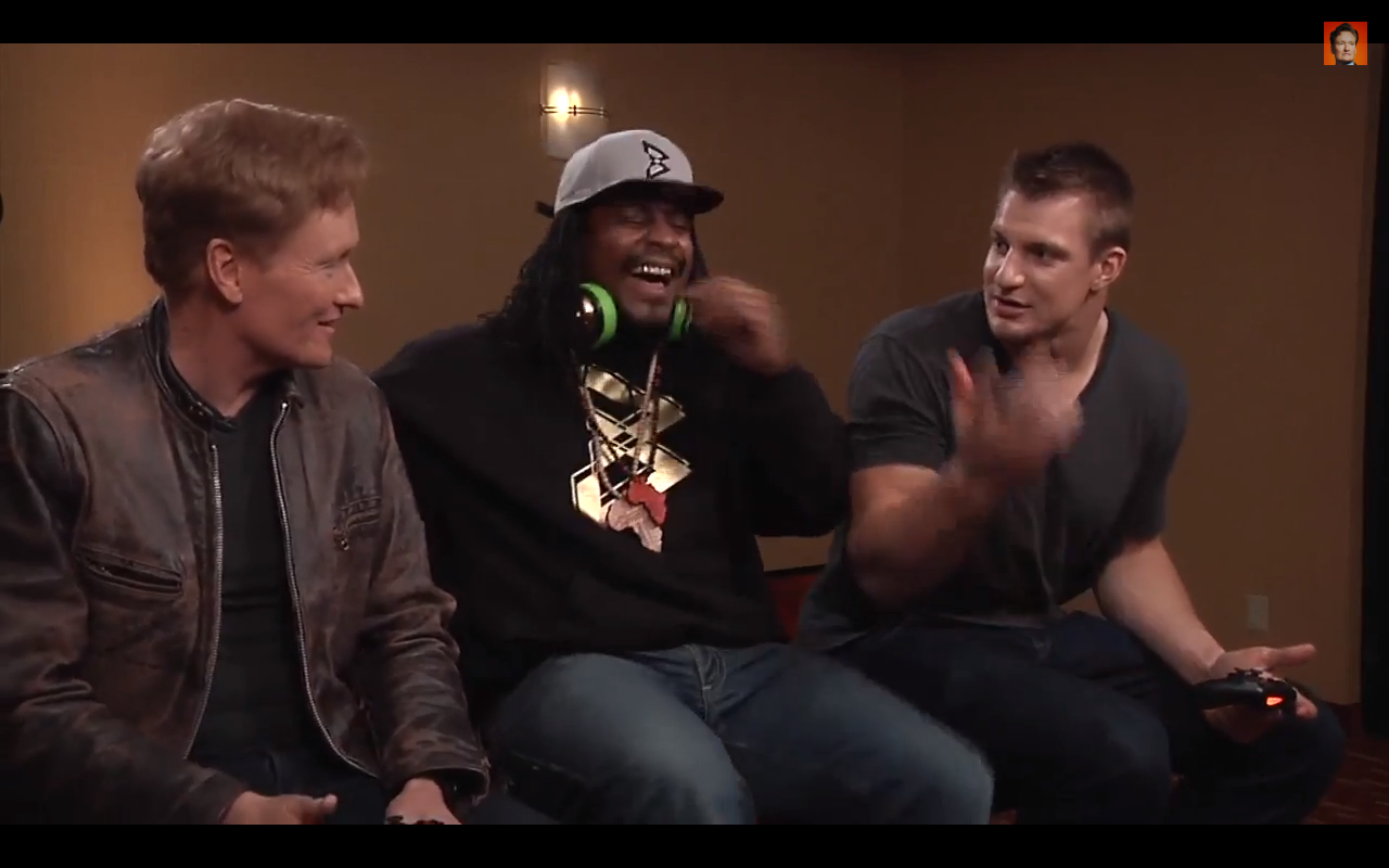 Sunday, it’s the Patriots vs. the Seahawks. But who wants to wait all the way to the end of the weekend to see ’em square off? Right! Conan O’Brien doesn’t either. So he got Gronk and Beast Mode together to get it on right then and there. MORTAL KOMBAAAT!!