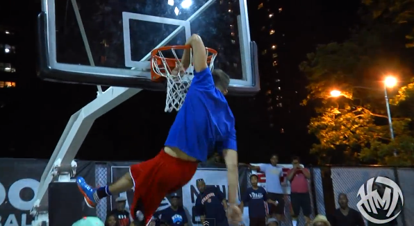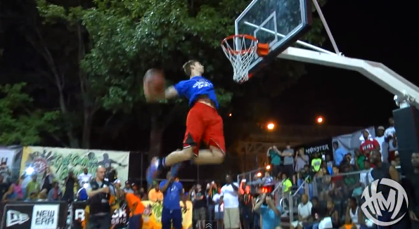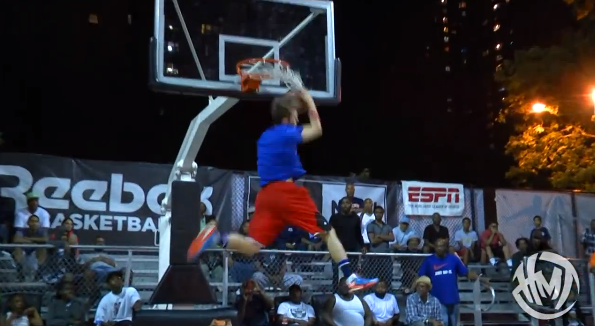 He’s not exactly ‘White Chocolate’ by looking at his hairstyle or swagger, but 6’1 basketball player Jordan Kilganon got busy up in New York City’s Rucker Park last week with a series of ill dunks. I believe the host of the event gave him the nickname ‘Mission Impossible’ loosely based on Jordan’s Tom Cruise inspired hair cut. Hahaaaaa! No matter what it’s easy to see ‘Mr. Mission Impossible’ has some hydraulics in his legs. Skill is skill son & Woody Harrelson’s character in the 1992 film ‘White Men Can’t Jump’ would be proud. Maybe he’ll come down & make an appearance in Atlanta this weekend with NBA stars like Dwight Howard for the ABEL (Atlanta Entertainment Basketball League)‘s upcoming 3-point & Slam Dunk contest this Sunday 8/8/14. The ABEL is Atlanta’s version of what goes down at the Rucker in New York City with games taking place Saturday at 6pm & contests on Sunday. Shouts to HoodMixtape & @AEBLHOOPS