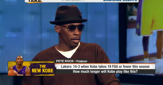 One of the top 3 hip hop producers of all-time, the legendary Pete Rock appeared on ESPN’s First Take this morning to debate the key sports stories of the day with Stephen A. Smith & Skip Bayless. When I heard Pete Rock was going to be on the show I knew I was gonna tune in to watch it, but I did have some reservations because over the years Pete Rock has never been a very vocal person even in hip hop related interviews. After watching the show this morning it did appear to be a little rough for Pete Rock as his relatively shy & laid back demeanor was indeed overshadowed by Stephen A. Smith & Skip Bayless who appeared to pick up the bulk of the debating. Check out the first segment above & more video from Pete Rock’s appearance on ESPN’s First Take below…..
