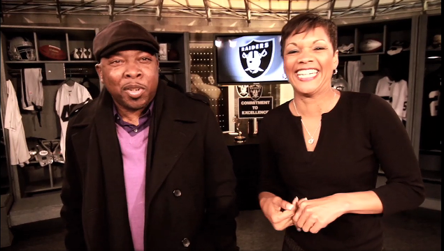 The homie Phife Dawg of the legendary A Tribe Called Quest is a straight up Philadelphia Eagles & New York Jets fan. Sometimes I’d clown the Phifer that he needs to just go on ahead & join the Raider Nation although I’m not mad at him supporting my hometown Eagles. Even though personally I’m a true Raiders fan. As a part of his duties with his new podcast for the NFL Network, Phife who splits time between Oakland & Atlanta, stopped by the Raiders practice facility & spoke with Raiders in house reporter & cheerleading coordinator Jeannette Thompson about his feelings on the Raider organization. Phife spoke on what he likes about the Raiders, the global Raiders fans he’s met, & more. Watch the video at the link below or click on the photo but make sure you watch it to the very end of the interview because Jeannette stumps Phife for a few moments when she asks him if they “Can Kick It?”….Hahaaaaa!!!