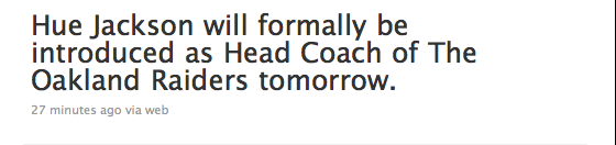 One Response to “The Oakland Raiders To Officially Announce Hue Jackson As Head Coach”