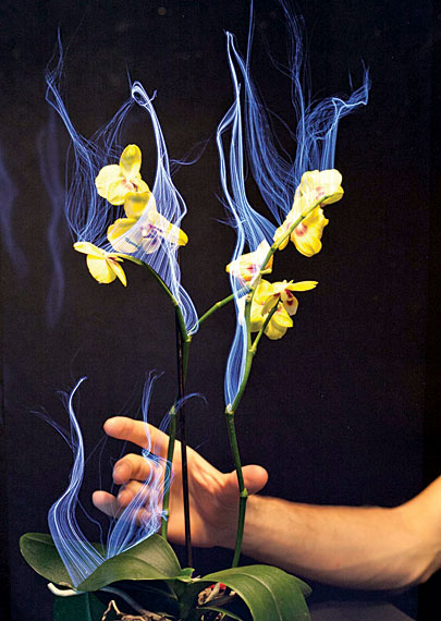 Having been at Disney since 2009, Poupyrev has also been working on technology that turns smooth surfaces into textures. Emitting a weak electrical signal through the body via a small device placed in the heel of a shoe or in a shirt pocket (see? like a Star Trek comm-badge… told ya!), Poupyrev’s technology can make the wearer “feel” images he projects. For example, when the wearer touches an image of a ball projected onto a wall, it feels rubbery to that person. Similarly, a wearer can feel the ridges on a projected image of a mountain. “We can easily add tactile feedback to any wall and public spaces,†Poupyrev says.