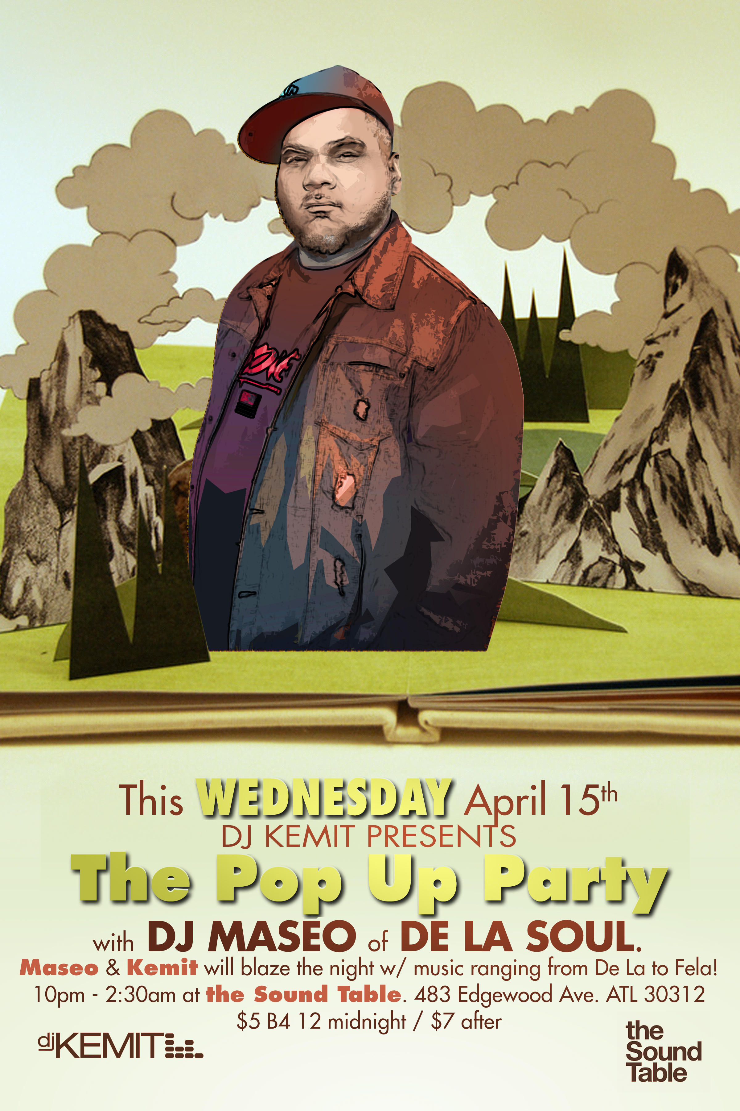 So what happens when a world renown DJ happens to be passing through Atlanta for a day and reaches out to one of the top DJ’s in Atlanta? Â Well what you get is DJ Maseo of De La Soul reaching out to DJ Kemit who organizes a pop up party going down at the Sound Table Wednesday night 10pm-2:30am at 483 Edgewood Ave. Â So if you are in Atlanta and you want to see one of the top DJ’s in the game spin then you know where you need to be! Some pictures below of the last time Maseo & Kemit spinned together at Spread Love event.