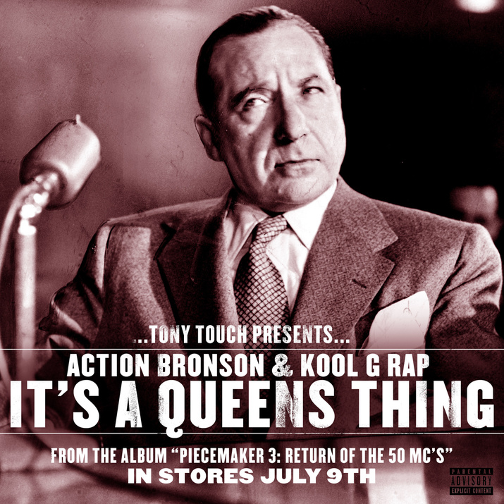 Producer Tony Touch with a hot one featuring Queens emcees Action Bronson and Kool G Rap. “It’s a Queens Thing” is from the forthcoming Tony Touch LP “Piece Maker 3: Return of the 50 MCs” (due out July 9, 2013).