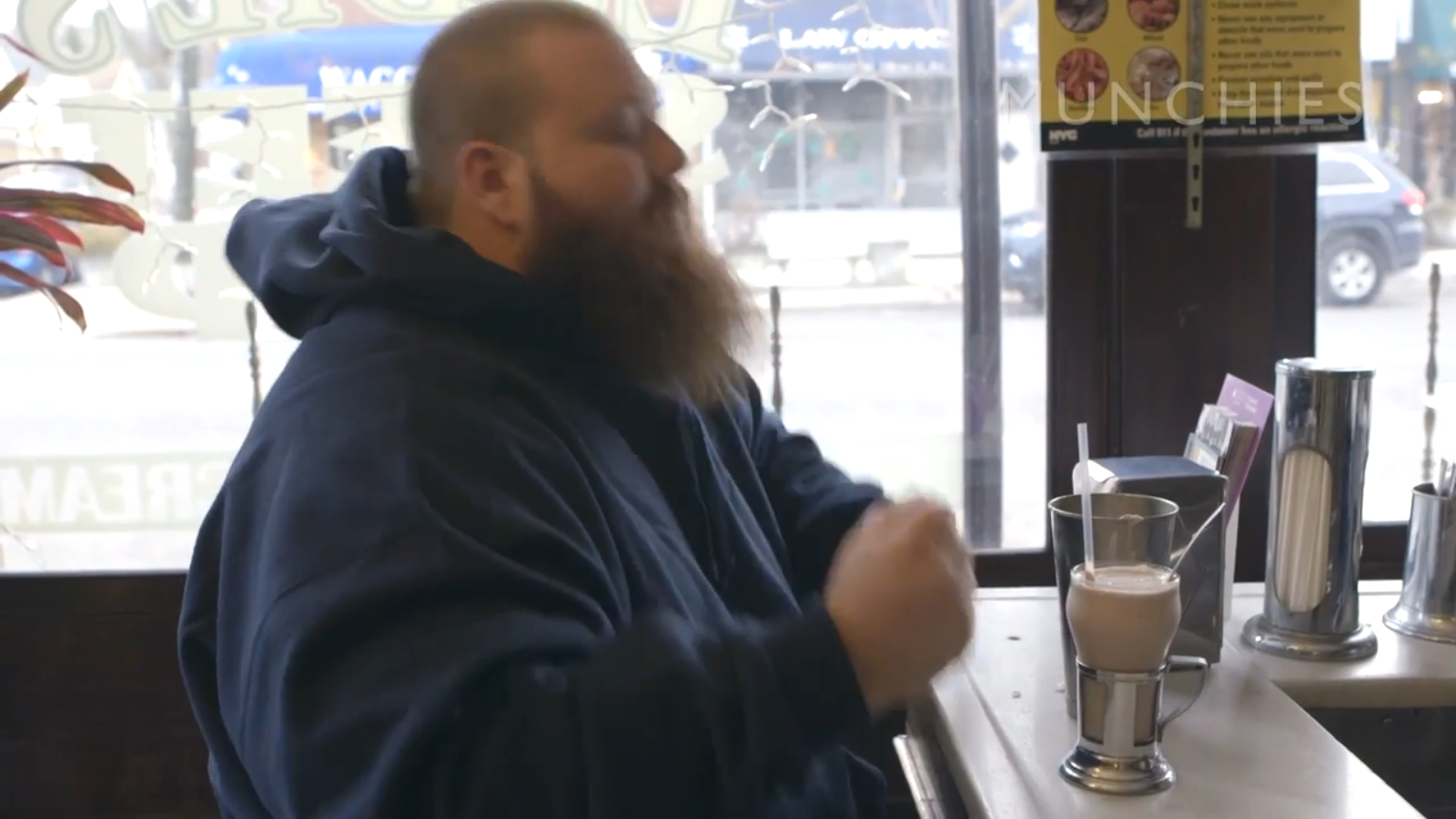 So, VICE has this channel called Munchies. How best to program for it. Episodes featuring Action Bronson… a food series featuring Bronson… absolutely! So, here’s Episode 1 of A.B.’s eat-great-grub worldwide food series for VICE Munchies. Bronson gets at Roberta’s in Brooklyn for pasta, reflects on food on treks to New Zealand and South Africa, tasty time back stateside at Eddie’s Sweet Shop (great shake). F*ck, That’s Delicious (hey, that’d be a dope name for the series, right?)…yeah!