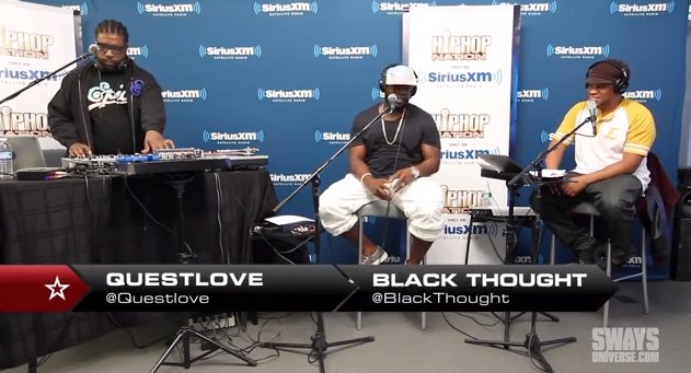“Sway sat with Questlove and Black Thought of The Roots on behalf of Hip Hop Nation on Sirius XM. In this quick clip, we see Quest behind the turn-tables, as Black Thought spits.” – Roots Town Hall on Sirius XM