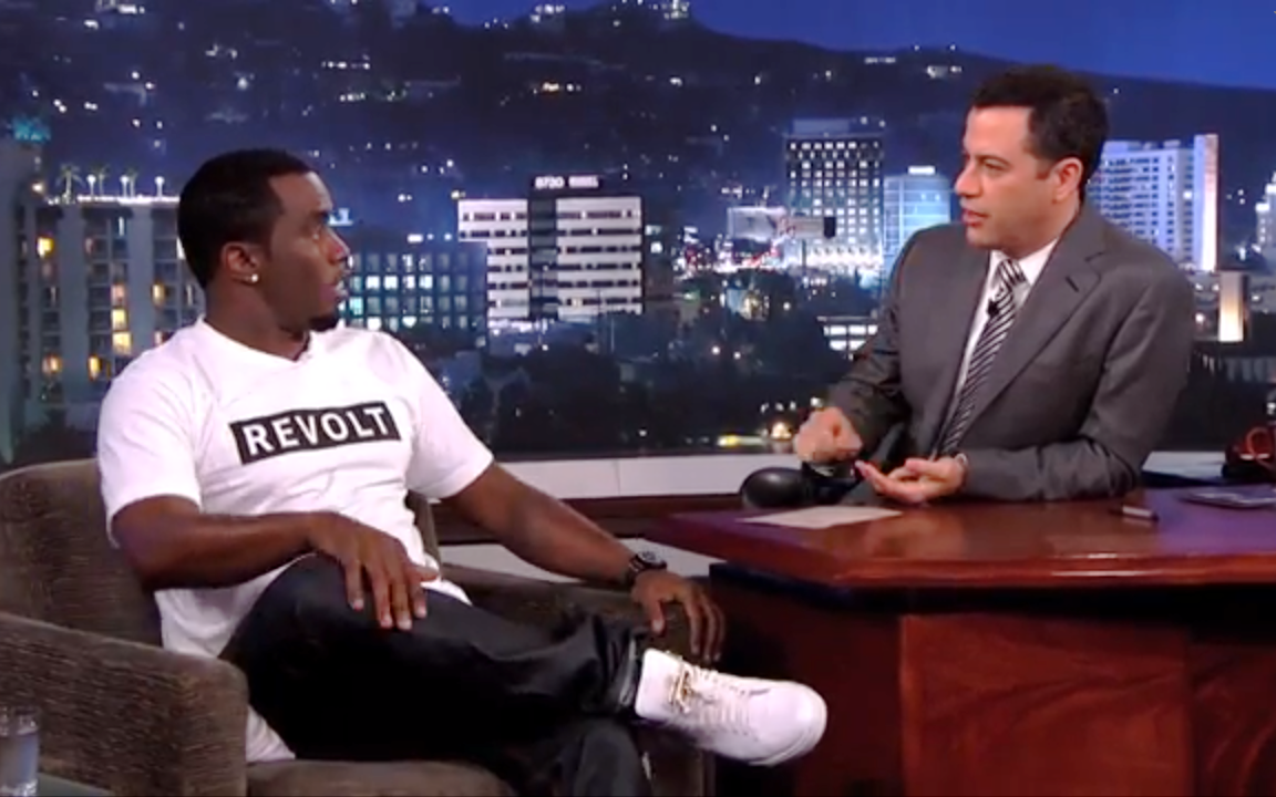 Johnson Diddy sat on the couch opposite Jimmy Kimmel to ‘answer’ for siding with Kanye against him… oh, and to promote his newly launched Revolt TV network. Other topics: the desire to own a NFL franchise and the Ciroc business. Start watching (part one) above. Parts two & three after the jump.