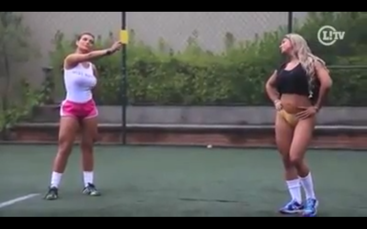 YOWZAAAA! Have you been watching the World Cup? Well, futbol fan or not, you can’t help but be a fan of all the fantastic fanny in this ‘sporty’ video. Don’t know what they are trying to do…but they are doing it for me! Give it up for the BUMBUM Football Team (played by a bunch of Miss BUMBUM Brasil contestants; each a ‘winner’ for Brazil’s best booty in her own right…a shame they only pick one each year).