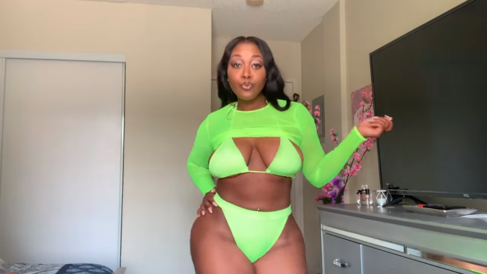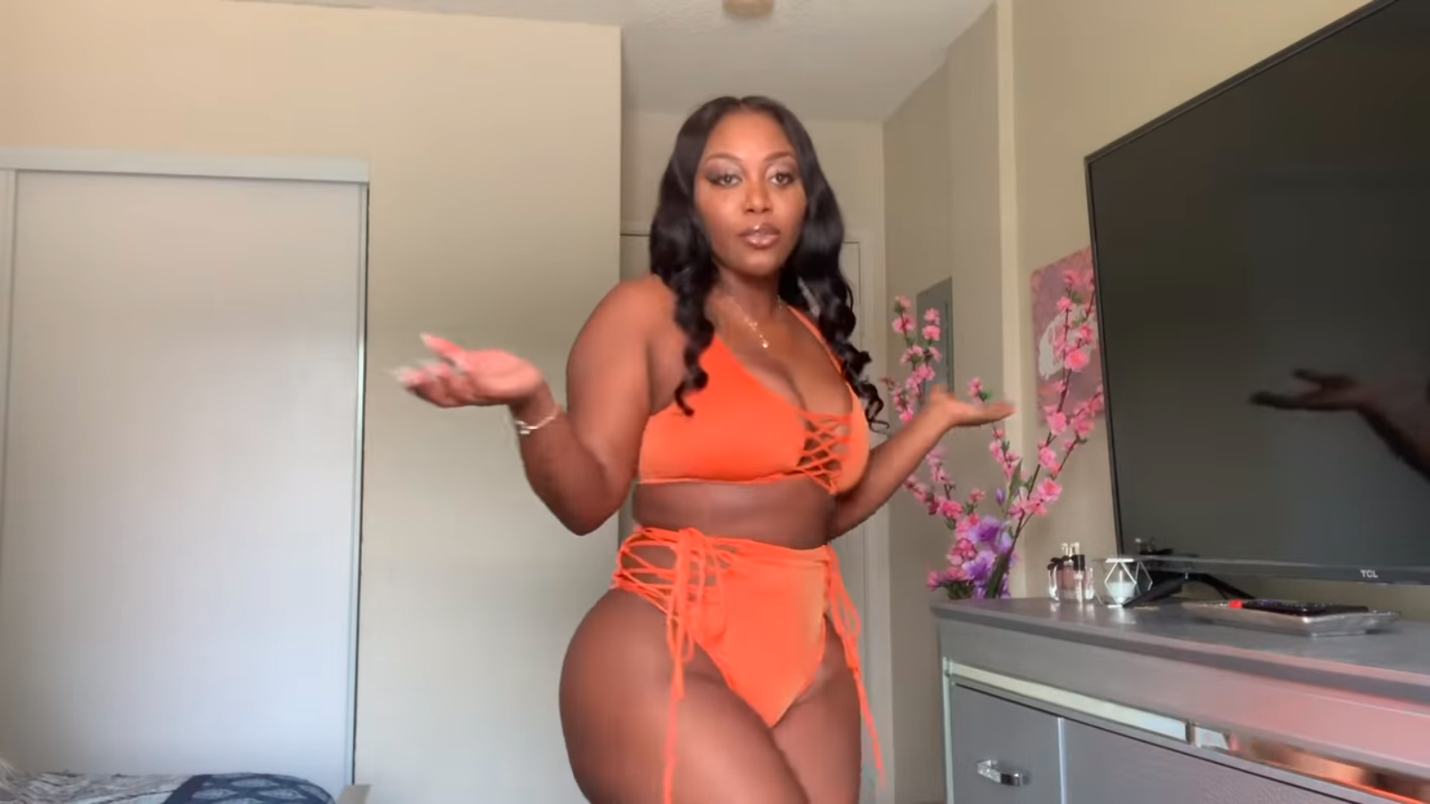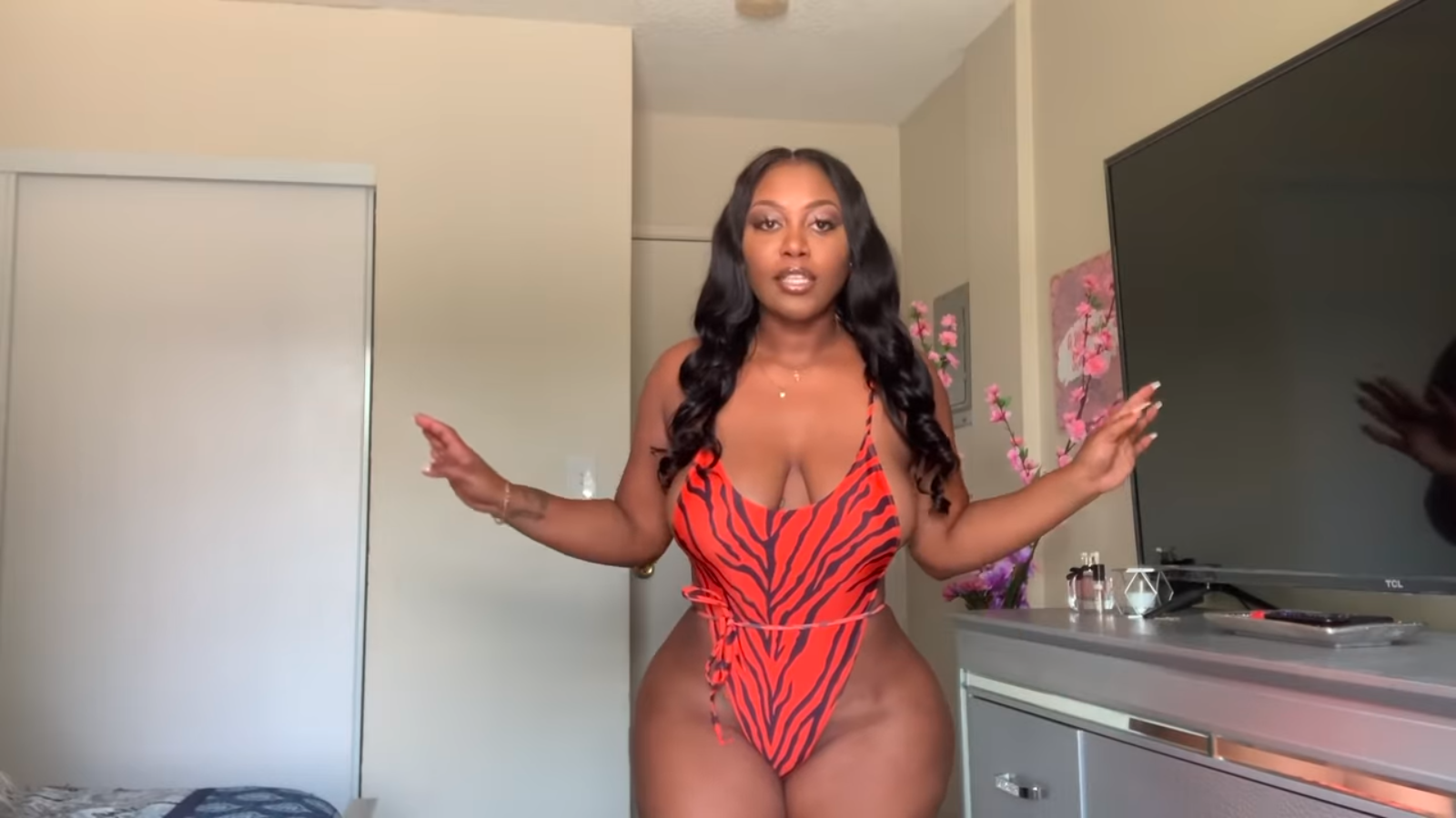 Egypt Rodriguez’s body is INSANE! I am in love with her HIPS and ALL THAT DONKEY for reals!! And she does a try-on video the right way… ’nuff with all that talky-talk… get with the fits! And get up on those tippy-toes so we can see that FULL figure #WOWZERS