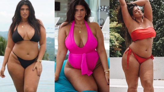 So La’Tecia suggests going on a day trip while we’re on vacay. And for starters, we go to an outdoor exhibit, some ancient structure or mock-up of it… I wouldn’t know, care or remember when she peels off whatever was covering up these outfits. Wowwwww! Let’s witness one of the natural wonders of the world, La’Tecia Thomas, in all her THICKNESS!