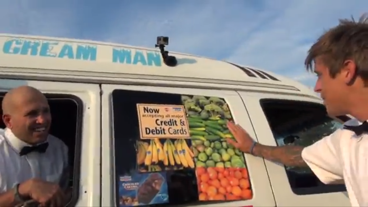 Wow! America wants its cool treats creamy and sweet… or else they will be upset… enough to cuss! Check out this ice cream truck guy trying to do his part to get his customers to make healthier food choices. It’s a joke, folks! Take it easy.