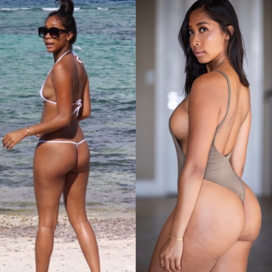 Wooooweeee! And she says she worked her butt off to get that body. Nah, baby. You worked that butt UP and OUT! Very interesting that I was thinking that having buns like that was more a matter of nature (genetics) than nurture (working at it). Turns out that Apryl went to work and got that lovely result.