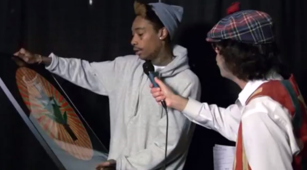 Nardwuar interviews Wiz Khalifa in Vancouver, BC (Canada). DOPE!! Wait… did Wiz just give his mom’s friend a shout AND call her ‘ratchet’ at the same damn time??? No respect… Hahahahaaaaaa! Crazy. Nardwuar goes right in with the gifts (weed-themed… appropriate) from the start of the interview… working in a gift with a big wrapping paper for Wiz immediately. Wiz was amp’d for the talk, too. Great stuff. A must watch.