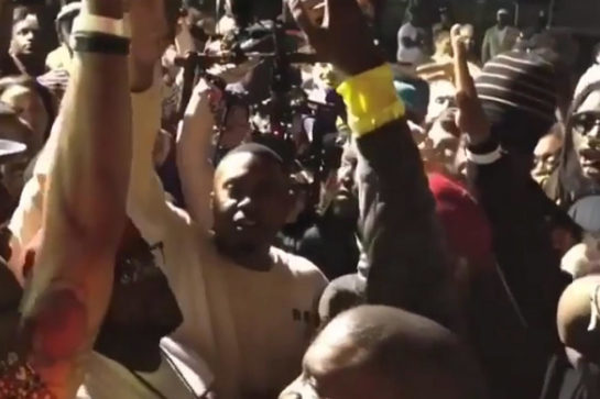 Took it back to where he always repped for the listening party. Block party style right out in the streets. Nasir. The emcee, the LP, the event.