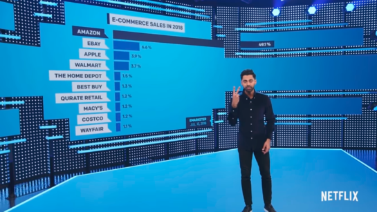 On the latest Patriot Act, Hasan Minhaj dissects Amazon.com and the arguably questionable business practices it has used to grow from an e-bookstore into a powerful, multi-faceted corporation that controls a huge chunk of the online cloud. Hasan also examines whether our current antitrust laws might need an overhaul for the digital age.