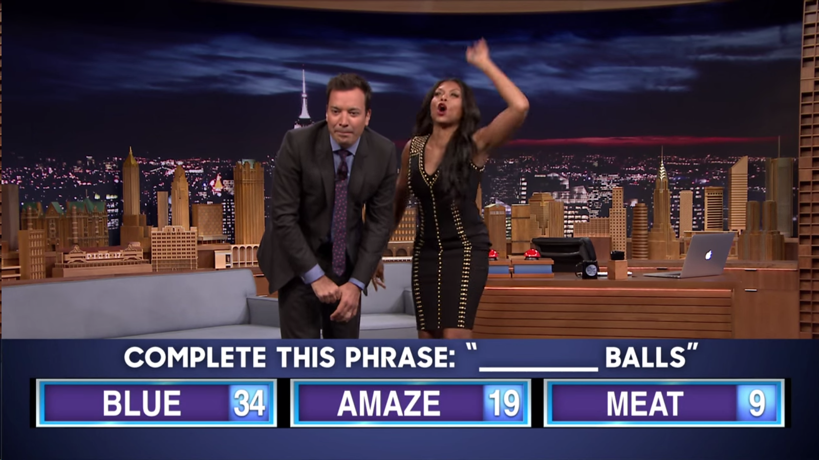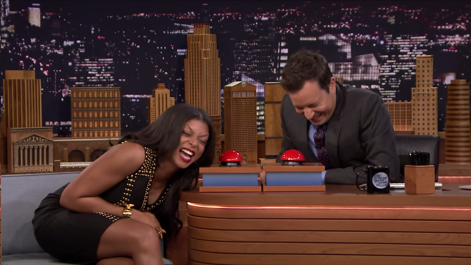 The lovely, the talented, the Emmy-nominated Taraji P. Henson is a guest on Jimmy Fallon’s couch. Mmm mm mm, if only she would be a guest on my… Okay, a man can dream, right? Here she is (above) being hilarious on The Tonight Show; playing Fast Family Feud with Fallon.