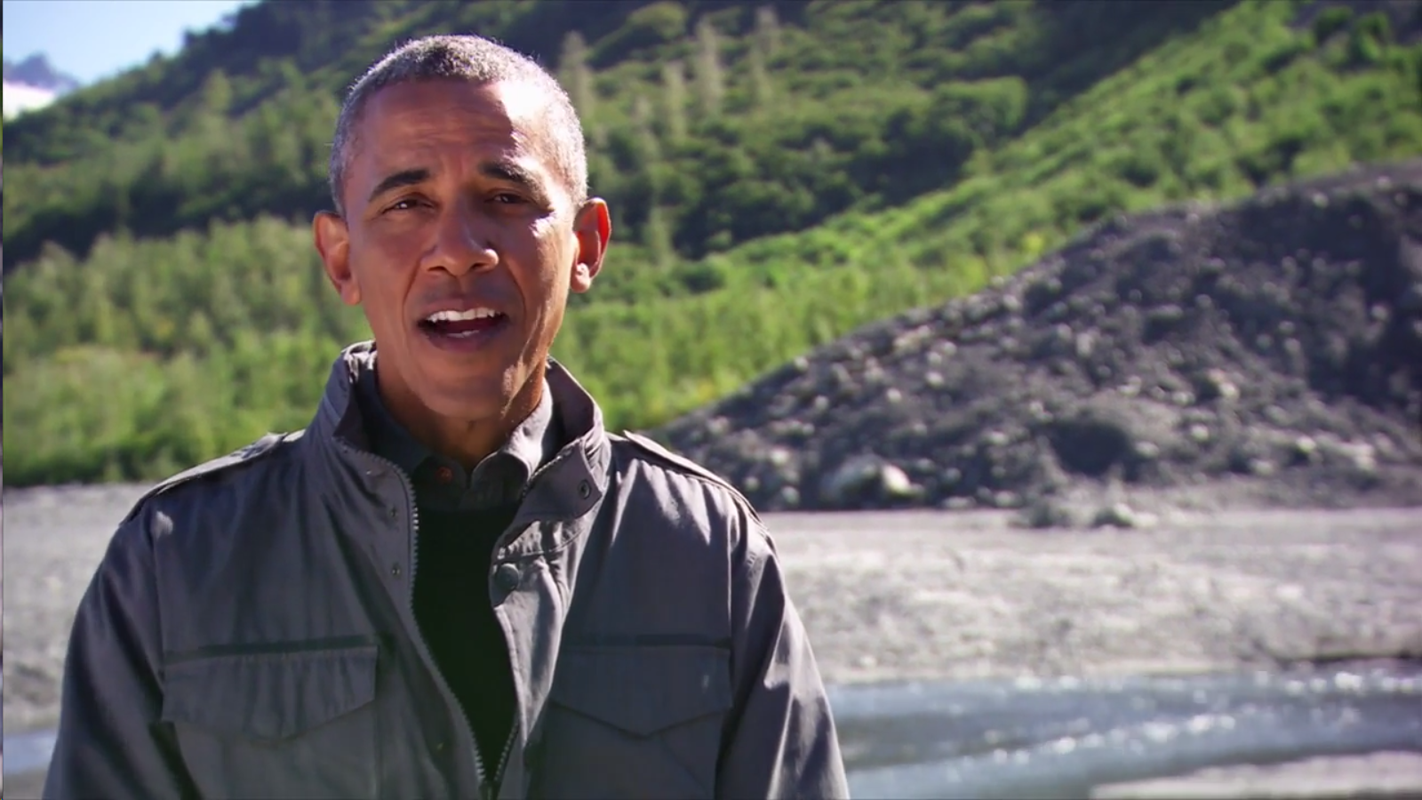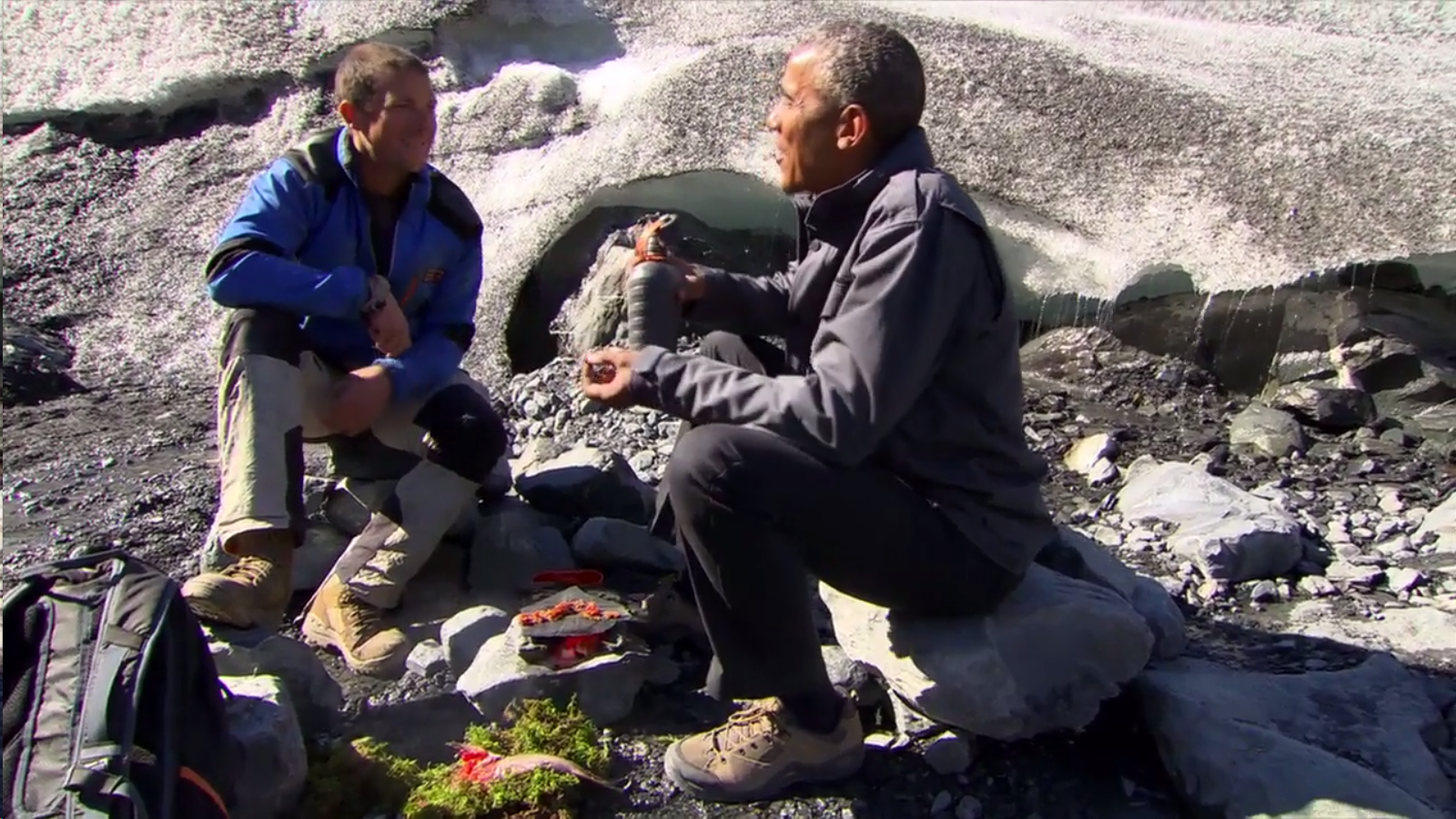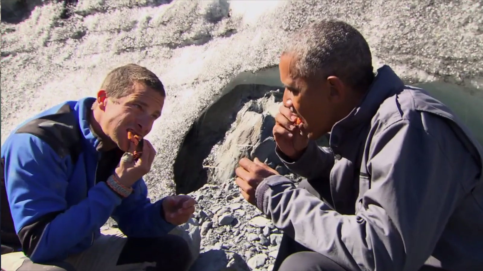 And now a word from our President: Come to combat climate change. Stay for the wild salmon… with Bear Grylls. Hilarious AND awesome at the same damn time! Watch President Barack Obama grub with Grylls in the great Alaskan wilderness. Be sure to check after the jump for more on the real reason the President was in America’s northernmost state.
